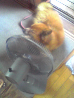 扇風機の前で優雅に涼んでやがるよ(-_-メ)